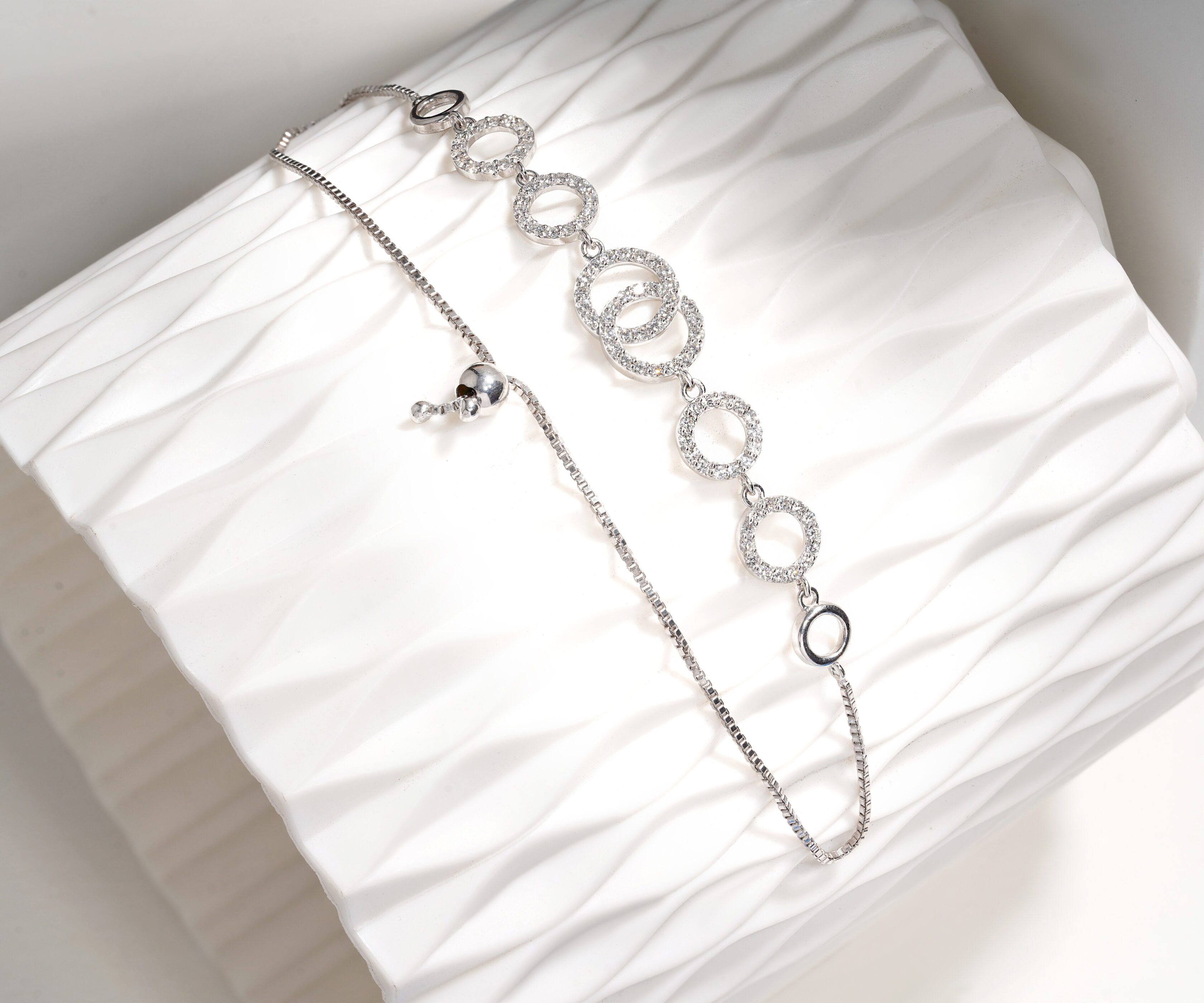 Celebrate the beauty of connection with the Infinite Loops Diamond Bracelet. This contemporary masterpiece features a series of interlocking circular halos, meticulously encrusted with diamonds to create a rhythmic, layered aesthetic. The sophisticated open-loop pattern is designed to let light pass through from every angle, making the diamonds appear as if they are gracefully floating across your wrist. With its blend of geometric precision and ethereal charm, this bracelet is an enduring symbol of style without end.