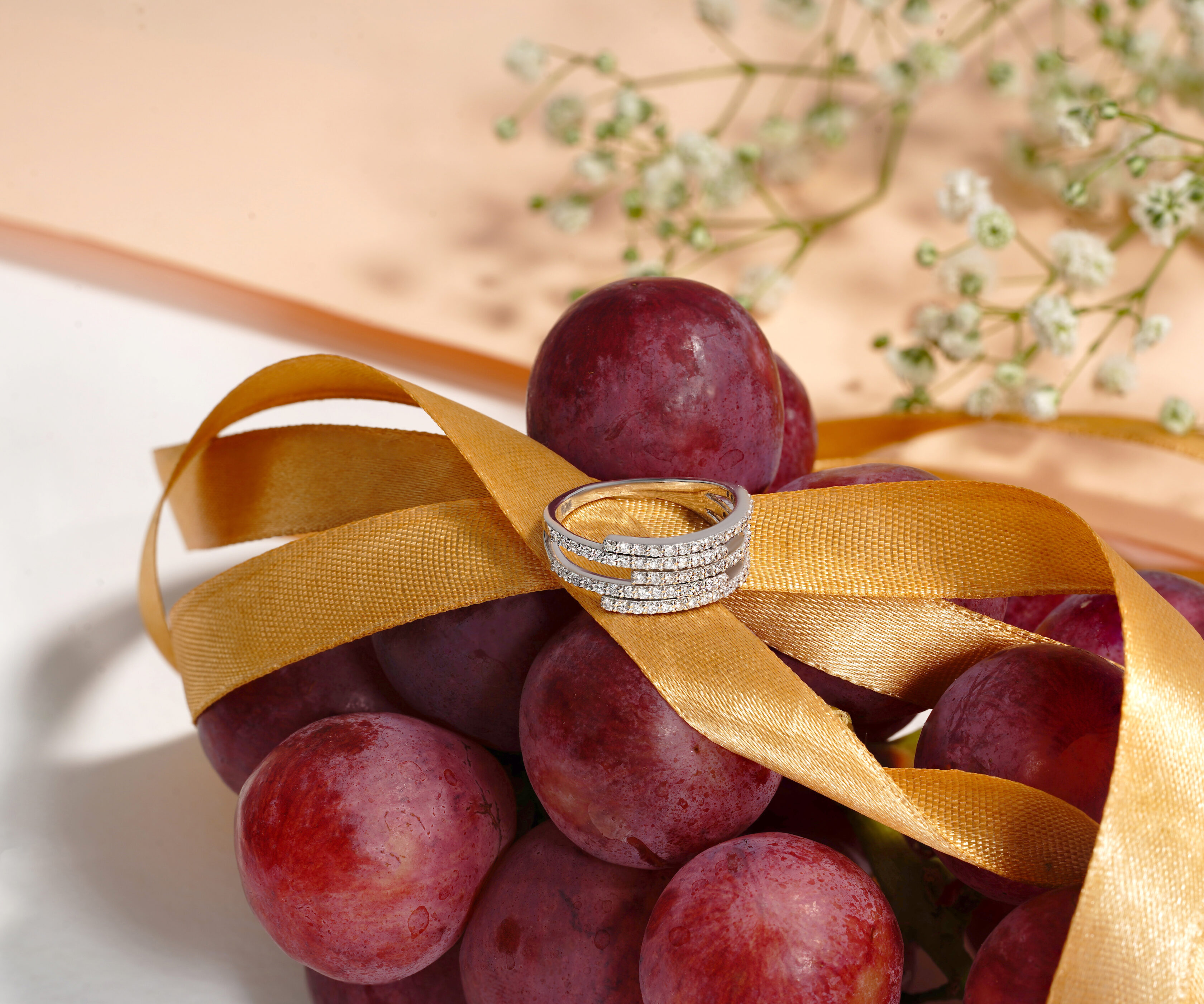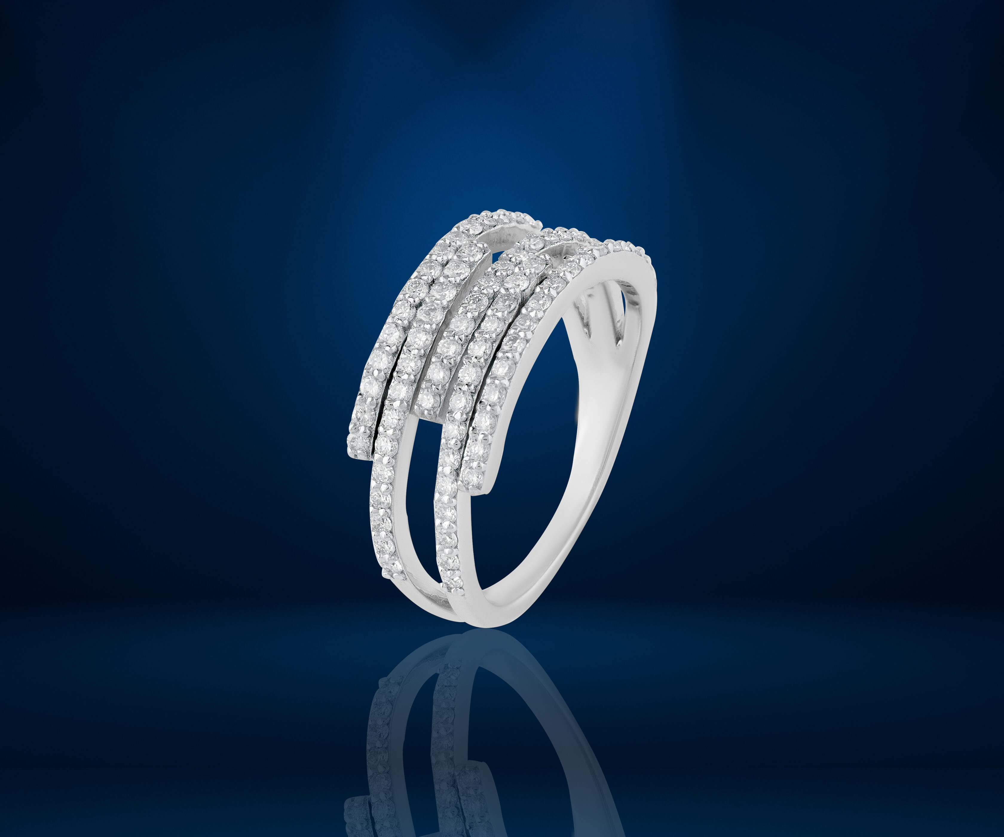 An intricate multi-row bypass ring where multiple shimmering bands of pavé diamonds wrap elegantly around the finger. The overlapping rows create the sophisticated appearance of four separate rings stacked perfectly together.
