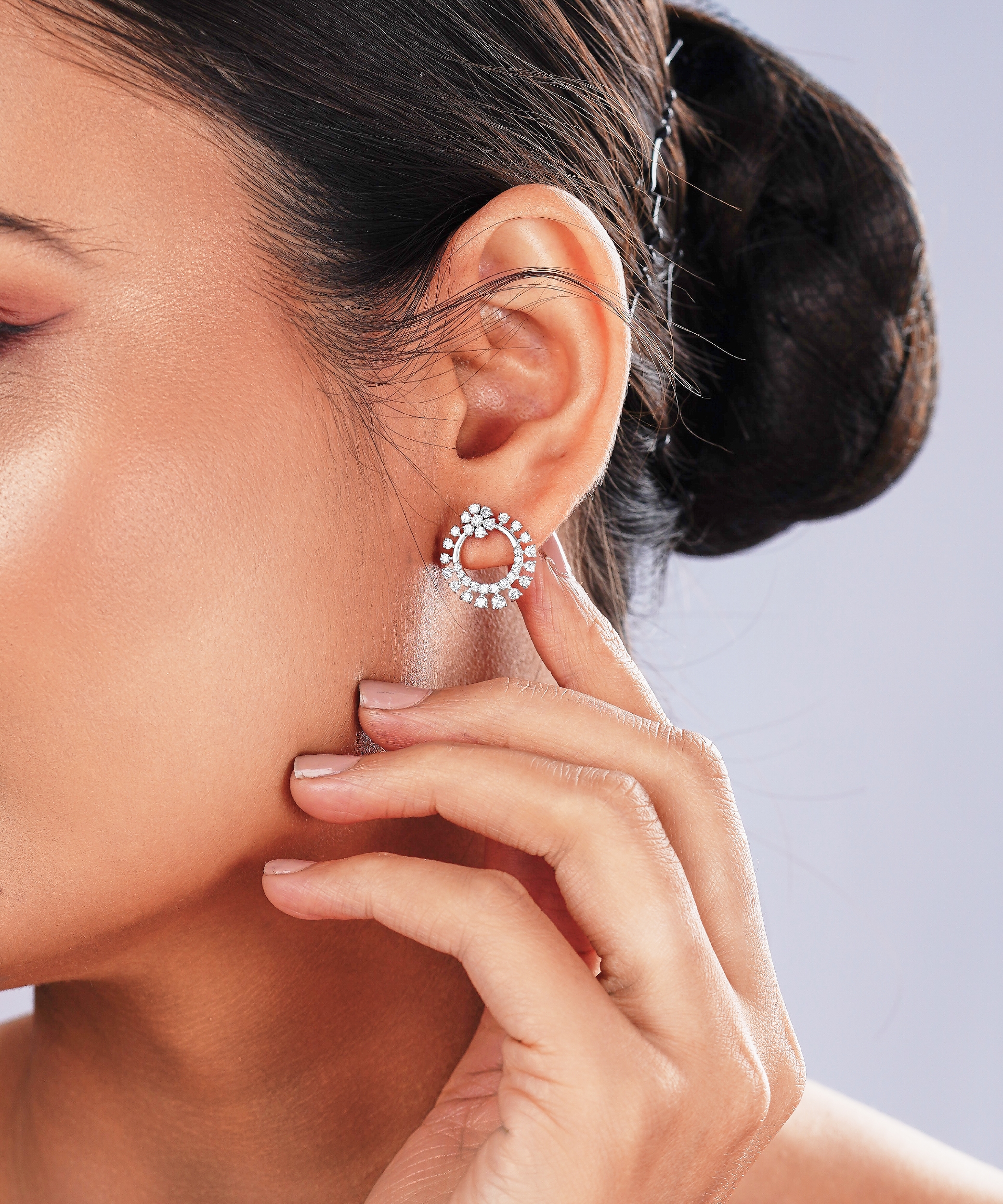 Capture the brilliance of the morning light with the Radiant Sunburst Stud Earrings. These striking earrings are a celestial take on the traditional stud, featuring a concentrated diamond cluster at the heart of each piece. This core is framed by an intricate, ray-like halo that extends outward, designed to catch and amplify light from every direction. Bold yet sophisticated, these earrings serve as a powerful statement of elegance, adding a high-wattage glow to your profile that transitions effortlessly from day to night.
