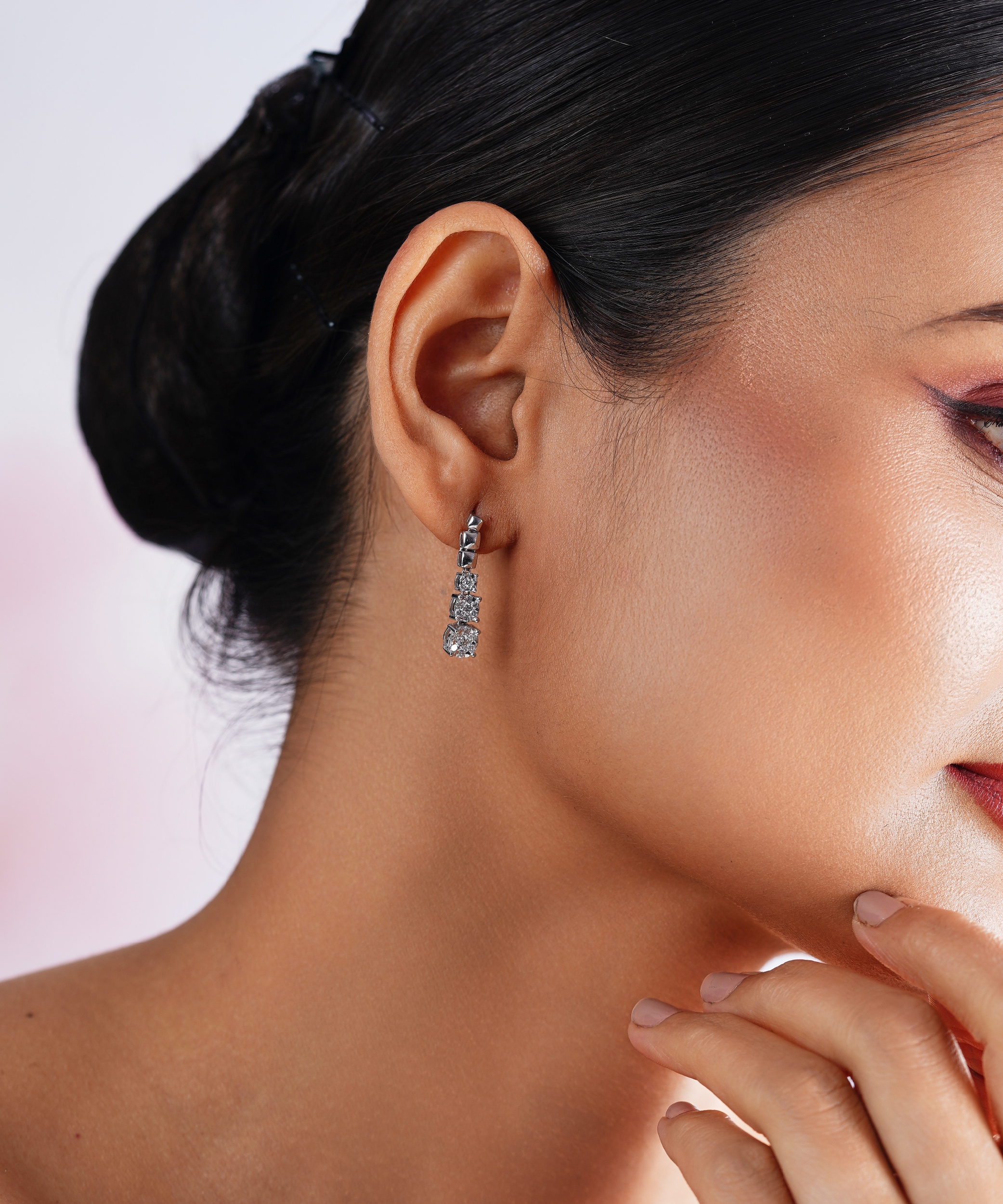 Elevate your jewelry collection with the rhythmic beauty of the Triple Bloom Drop Earrings. This sophisticated design features a vertical cascade of three brilliant diamond clusters, expertly arranged in a graduated sequence. Each blossom-inspired cluster is meticulously hand-set to catch the light, creating a linear “path of brilliance” that elongates the neck and adds a touch of refined glamour. Perfect for bridal wear, formal galas, or as a signature statement for high-profile evenings, these drops are the ultimate expression of floral luxury.