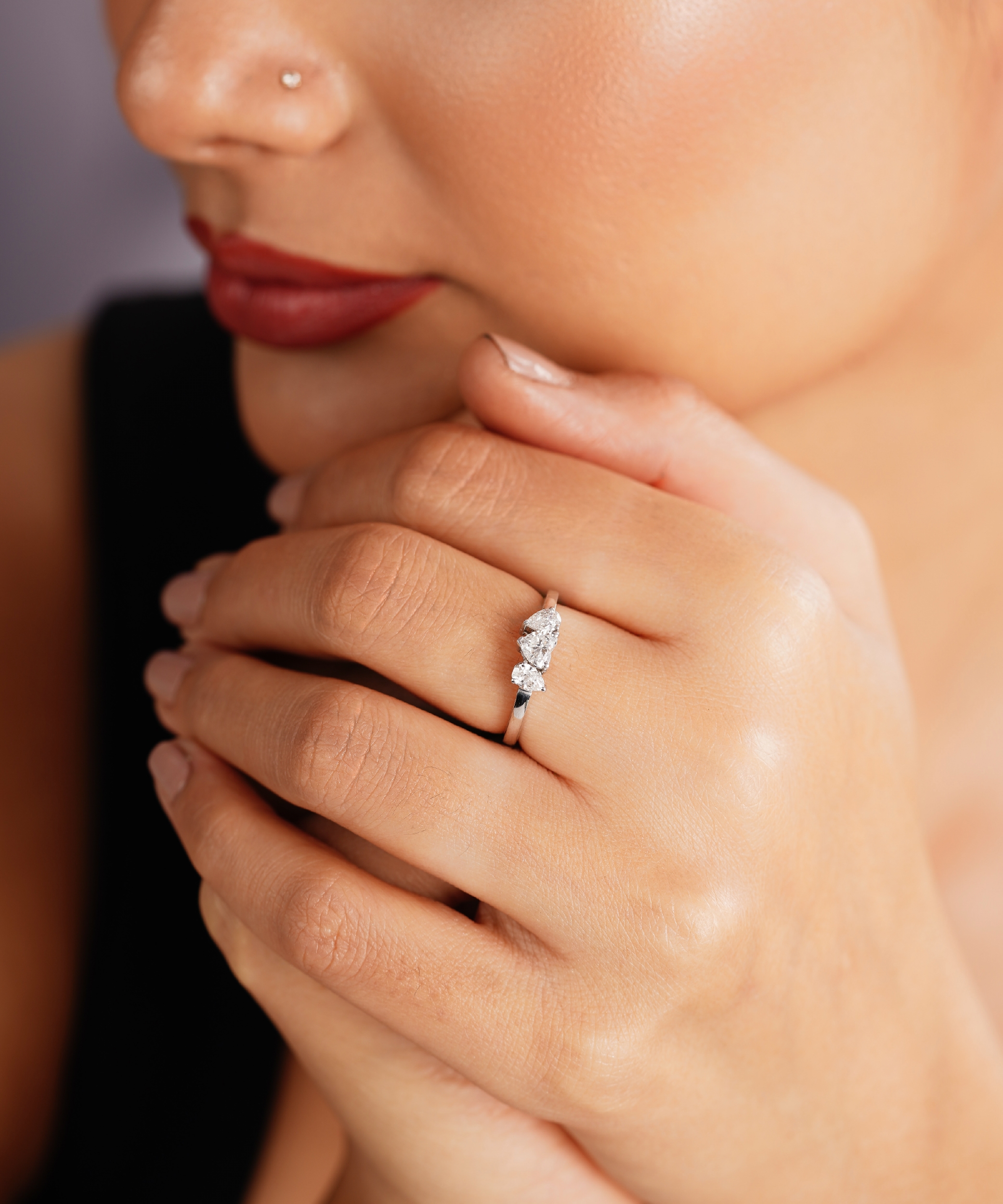 Celebrate the many facets of love with the Triple Heart Suite Ring. This charming and sentimental piece features a trio of exquisitely crafted heart-shaped diamond clusters, meticulously aligned in a soft, graceful arc. The design creates a continuous horizontal shimmer that flatters the finger, offering a modern and playful twist on the traditional multi-stone band. Whether chosen as a symbolic gift or a personal treat, this ring serves as a radiant reminder of cherished connections and heartfelt moments.
